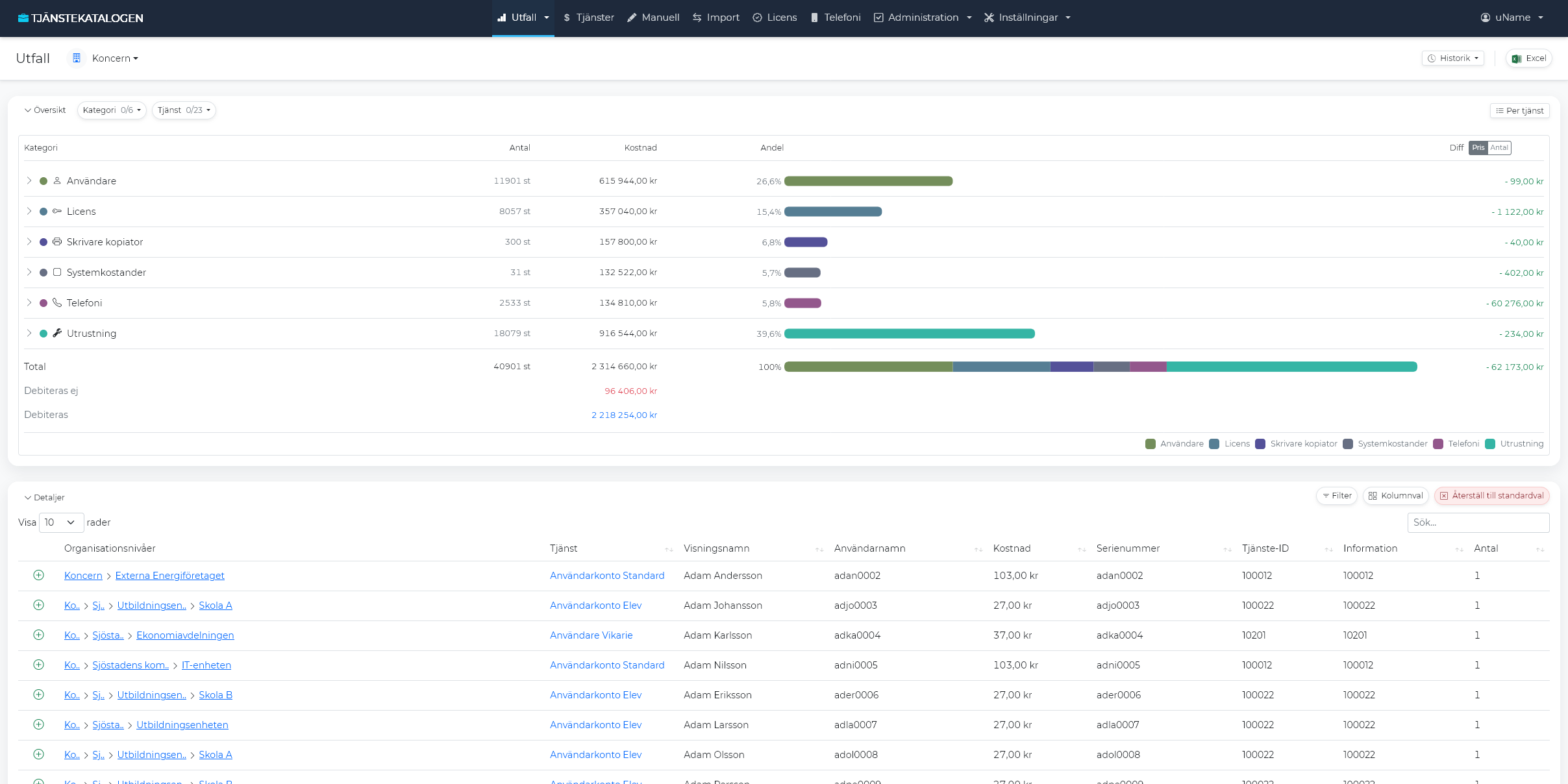 Tjänstekatalogen utgår från att debitera kostnader från en organisationsstruktur. Därför behöver ni ha en källa där denna information finns. Om ni saknar det kan vi hjälpa er att bygga en struktur för att fördela kostnader på olika kunder.